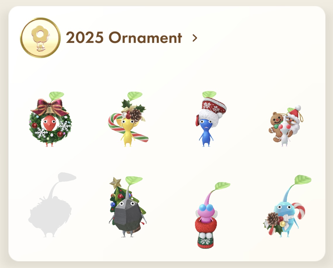 I have 13 2025 ornaments pikmin, waiting for purple pikmin.